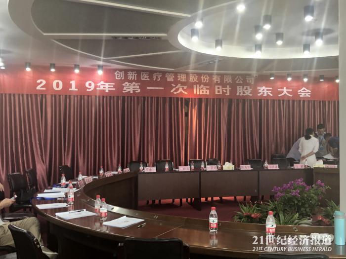 8月19日,创新医疗2019年第一次临时股东大会在诸暨山下湖珍珠工业园的会议室召开,21世纪经济报道记者现场看到,董事长陈海军、总裁马建建主持会议,现场较为平静,也没有股东提问。