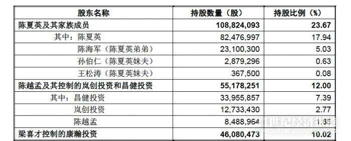 2019年一季度末,大股东陈夏英、陈海军姐弟,分别持股17.06%和4.89%,合计持股21.95%。