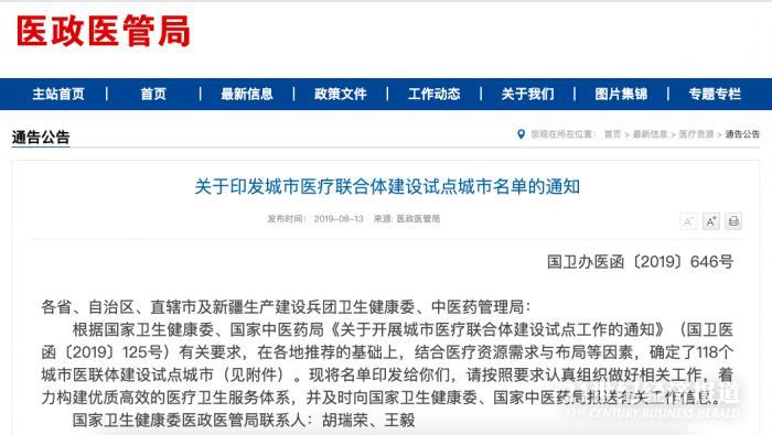 118个城市医联体建设试点公布:北上广深全入围,苏浙粤川包揽超3成