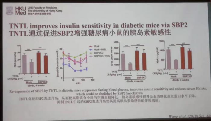 冯奕斌介绍说 ,此次糖宁通络在临床前的动物模型和糖尿病患者身上表现出显著的降糖作用,并在减肥和减轻糖尿病耐药性上效果明显。同时,研究还找到了糖宁通络的分子靶点SBP2。