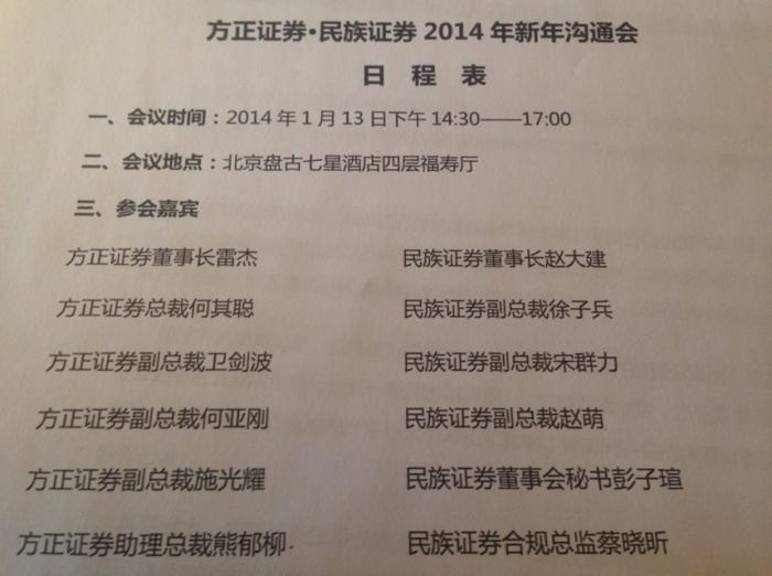 后来,政泉系与北大系共同筹划方正证券吸收合并民族证券一事。方正证券与民族证券共同在此举办的有关合并一事的新年沟通会,正是在此楼举办。
