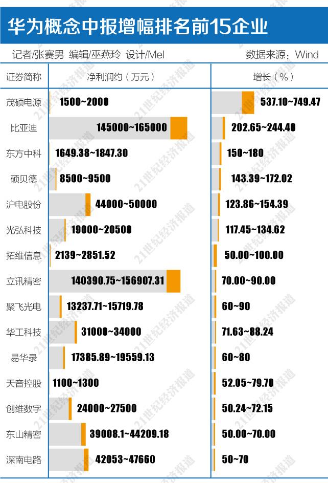 Wind数据显示,已发布中报预告的56家华为概念公司中,共有46家公司实现盈利,占比在8成以上,其中6家公司的净利润增幅在100%以上,不少公司的业绩增幅离不开华为相关业务的贡献,国产替代正直观地体现在数据中。