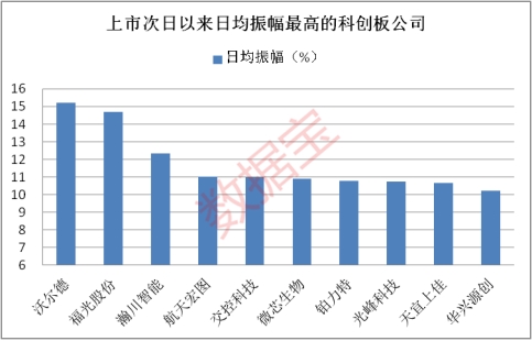 证券时报•数据宝统计显示,当前28家科创板上市公司上市次日以来的日均振幅为9.58%,18家公司的区间日均振幅不到10%,仅有沃尔德一家公司上市次日以来的日均振幅达到15%。