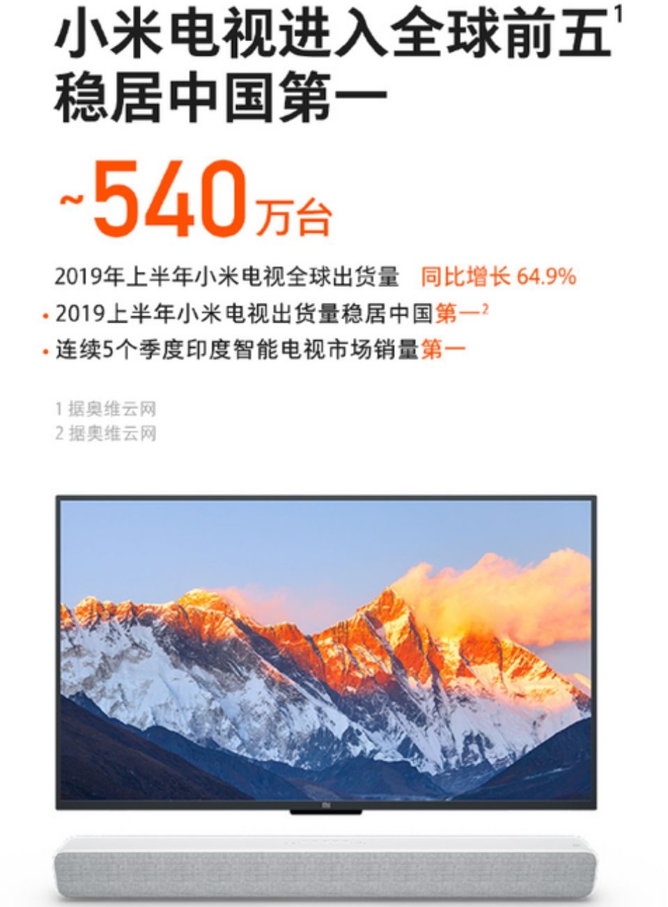 另外一块IoT与生活消费品业务,2019年上半年收入为270亿元,同比增长49.3%;其中二季度的收入为149亿元,同比增长44%。今年上半年小米电视的全球出货量为540万台,同比增长64.9%;根据奥维云网统计,小米电视出货量在截至2019年6月30日止六个月稳居中国大陆市场份额的第一位;同时在印度智能电视市场也保持连续五个季度销量第一。