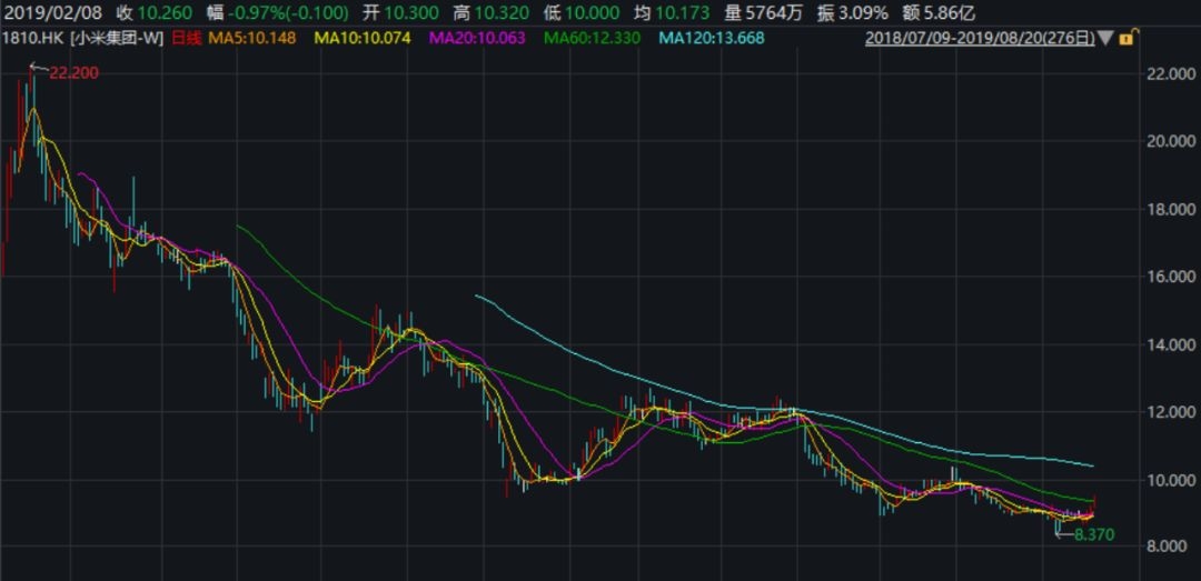 从股价表现看,小米集团8月20日港股收盘报9.43港元,涨3.17%。但是,小米股价表现一直不太好,从去年7月高点以来一直呈现下跌趋势。