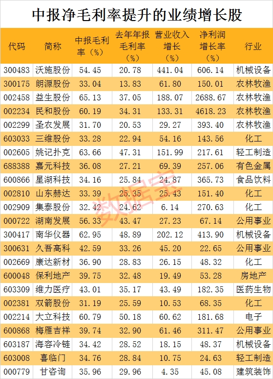 23只业绩增长股毛利率大幅提升