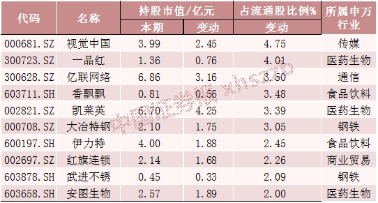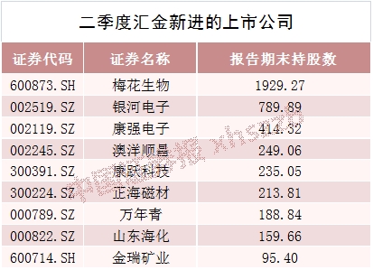 证金汇金新进重仓10股