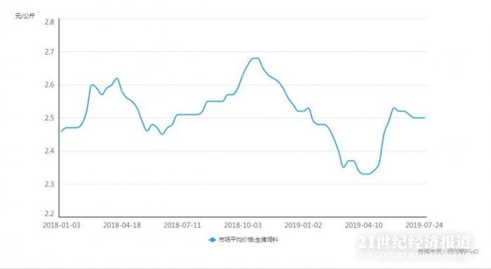 受下游生猪存栏下降及非洲猪瘟疫情影响,上半年生猪饲料价格较上年同期大幅下滑,饲料需求持续萎缩,价格总体低迷。