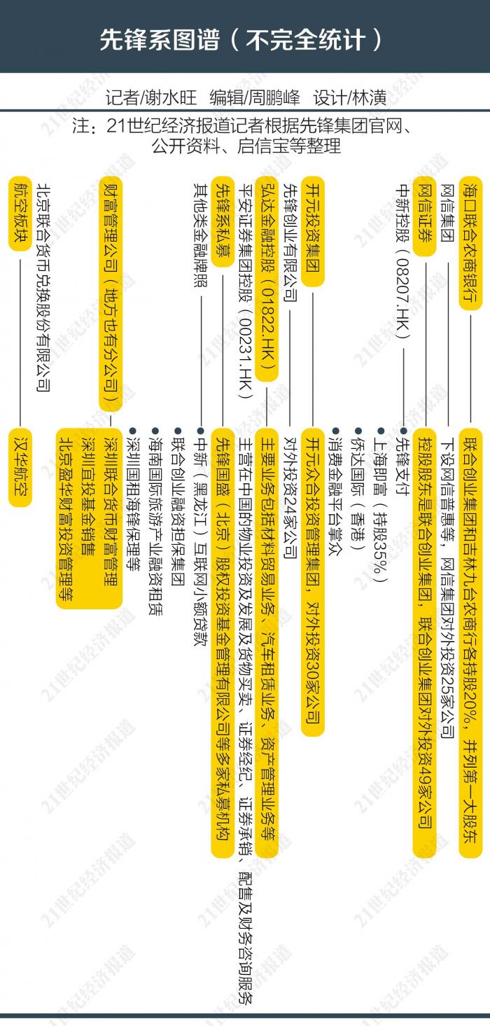 自2003年创设,16年来,先锋集团版图不断扩大,体系庞杂。仅先锋集团官网显示,其旗下即有网信集团、港股上市公司中新控股、产业基金管理公司开元投资等板块。