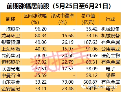值得一提的是,以5月25日的数据为基准,前期涨幅较好的4股均为市盈率较低的高市值股,滚动市盈率均低于30倍,市值主要集中在30亿至100亿之间。