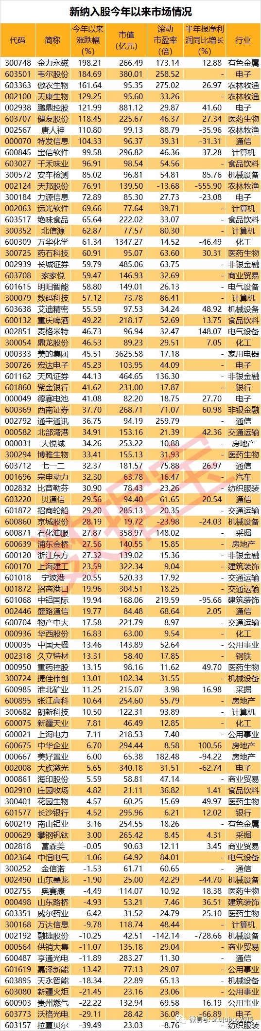 从今年以来市场表现来看,这87股平均上涨35%,大幅跑赢沪指同期表现(涨幅16.18%)。从上半年业绩来看,截至8月23日,这87股中有41股已公布半年业绩,29股净利润同比上升。其中,麦格米特、中华企业两股上半年净利润涨幅翻倍,安车检测、西南证券两股净利润同比上涨超60%。净利润同比下降股中,融捷股份、天邦股份两股,分别下跌728.66%、555.9%。
