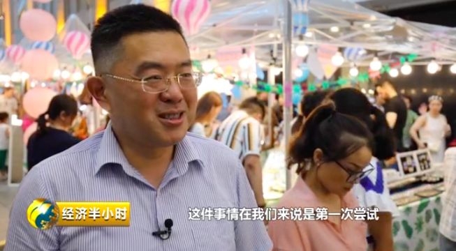 在南京路一侧的六合路上,第一次开起了集市,一场独具特色的文创“夜游会”吸引了很多市民和游客。50多个小摊位上,摆放着各式各样的文创产品,饰品、摆件、小玩具,琳琅满目,让人目不暇接。