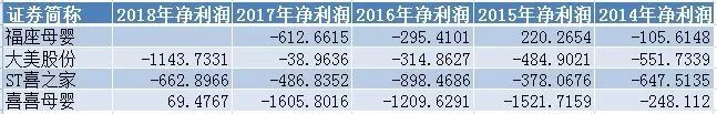 从2014年-2018年的财务数据来看,这四家“月子中心”概念股可谓在盈利边缘苦苦挣扎。从2014年-2018年,大美股份和喜之家的净利润全部为负,福座母婴仅在2015年录得净利润220万元,而喜喜母婴则在连续3年亏损上千万元后在2018年录得净利润不到70万元。