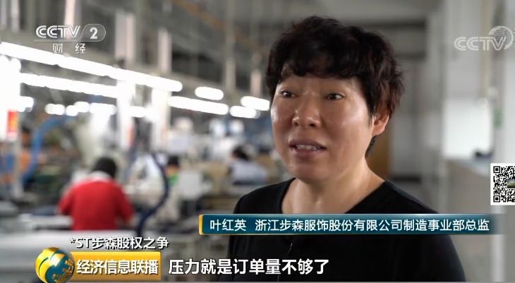 步森集团以及服装的生产厂区在浙江省诸暨市枫桥镇,上市公司的办公地已经搬去了杭州。央视财经记者在厂区看到,目前,服装生产线仍在正常运转,但工作人员称订单量已经下滑。