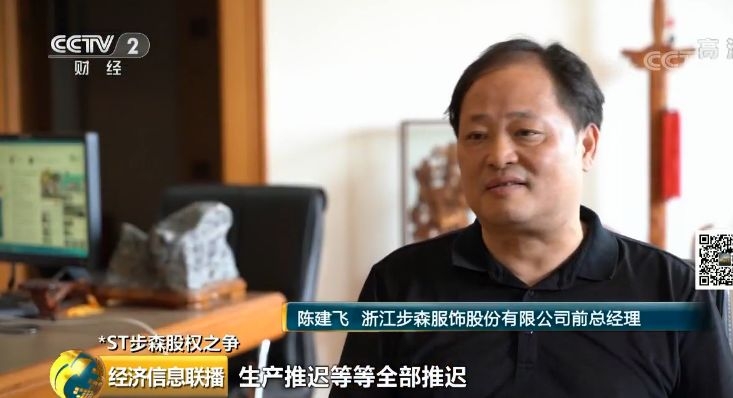 随后,央视财经记者在步森集团的办公楼内,见到了*ST步森的前任总经理陈建飞。他坦言,尽管现在他不参与上市公司的经营和管理,但是近期他发现,步森股份的生产经营明显出现了一些混乱。