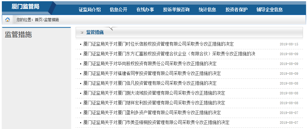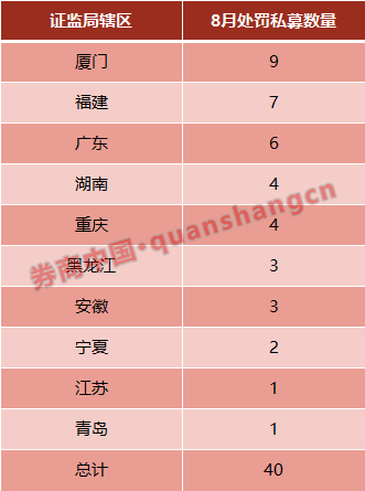 其中,厦门证监局发出了9份针对私募机构的监管函,主要对这些私募机构采取责令改正,为8月对私募下发监管函数量最多的证监局。此外,福建有7家私募被罚,广东有6家被罚,都是监管部门查处力度较大的地区。