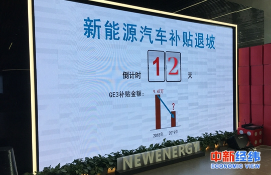 补贴退坡前4S店的倒计时牌 中新经纬 摄