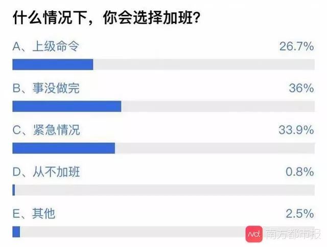 尽管从总的调查结果来看,有超八成网友尚未实现“下班自由”,不少网友也戏称下班了之后只是换个地方继续工作,加班加点是常事,但实际上不得不高强度加班的只是少数。