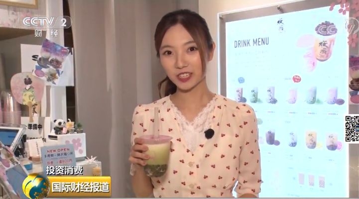 财经频道特约记者 李茜文:我手里拿的就是店内非常有人气的樱花抹茶珍珠奶茶,看上去非常可爱。抹茶和牛奶结合在一起,口感非常顺滑。珍珠很有嚼劲。