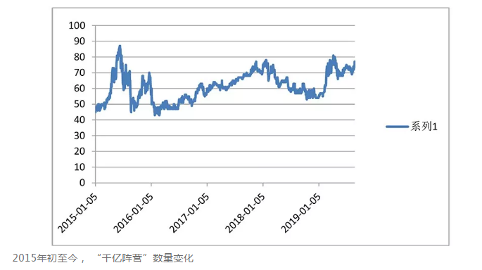 2019年三四月份,“千亿阵营”公司快速扩容,从60多家一路增加至70多家,并在4月10日达到了80家。