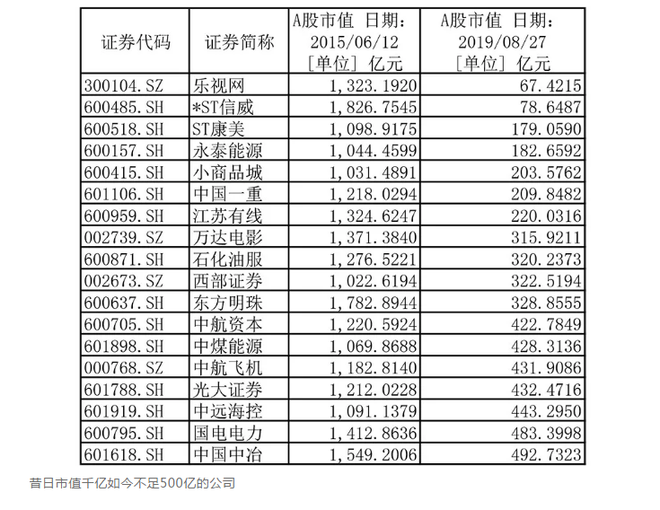 有进就有出,昔日牛市中的千亿公司,如今有不少已经落榜,其中个别公司甚至境况惨淡。