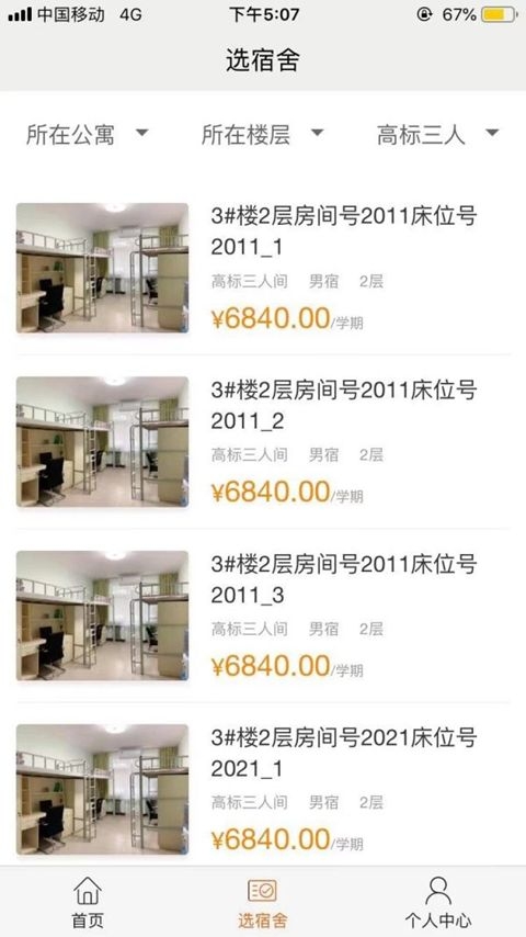这样的价格意味着什么?记者在浏览学校所在的河北省秦皇岛市租房信息后发现,目前,该市的整体租房价格并不高,以学校附近的开发区为例,一套62平米的两室户,其出租价仅为1.6万元/年。也就是说,在校内的鹏远公寓住一学期这种“豪华二人间”,在校外就可以租1年两居室。 记者发现,根据学生的爆料信息显示,除天价两人间外,该公寓还提供三人间,价格依然惊人。APP提供的所谓“高标三人间”信息显示,一张床位的价格达到6840元,一学期对比租房网站提供的当地月租金价格,换算下来,这样的收费也可以在校外的两居室甚至三居室住半年时间。