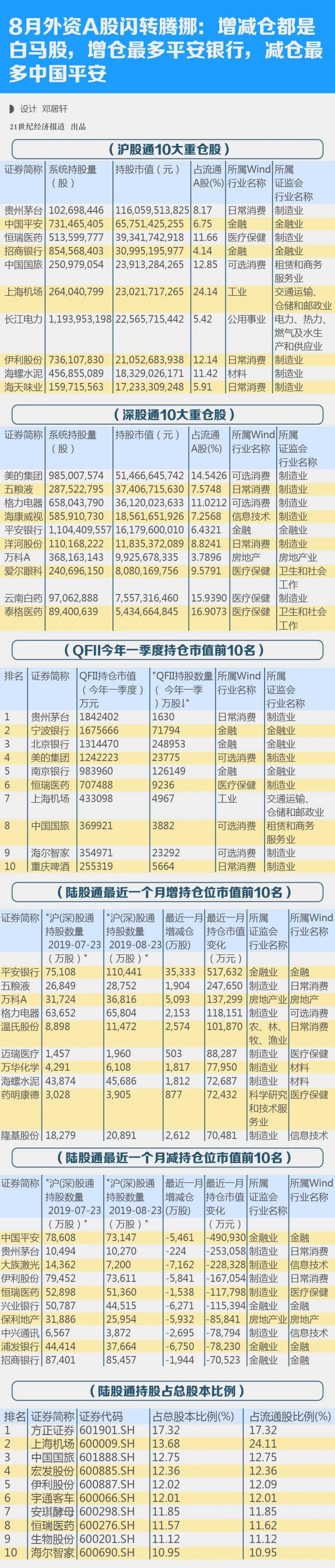 8月外资A股闪转腾挪:增减仓都是白马股,增仓最多平安银行,减仓最多中国平安