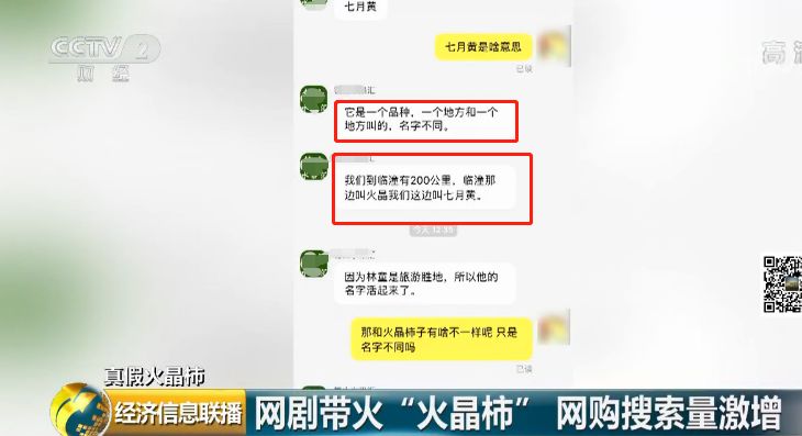 记者随机点进一家,发现里面销售的柿子实际上叫七月黄,产自陕西省大荔县。客服人员还表示,这种“七月黄”其实和火晶柿子是一个品种。