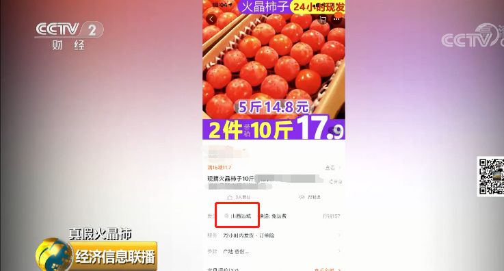 央视财经记者还发现,许多售卖所谓的火晶柿子的店铺,显示的发货地址并不在陕西临潼区。