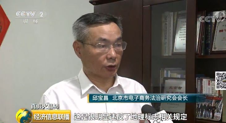 北京市电子商务法治研究会会长 邱宝昌:这是很明显违反了地理标志相关规定,违反产品质量法,也违反了消费者权益保护法。一个产品卖火,都去傍大牌、傍网红,实际上是损害消费者权益,行政部门要对他进行查处,消费者可以要求他承担责任。