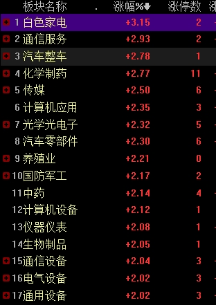 盘面上,医药、家电、无人驾驶、互联网金融等板块涨幅居前。