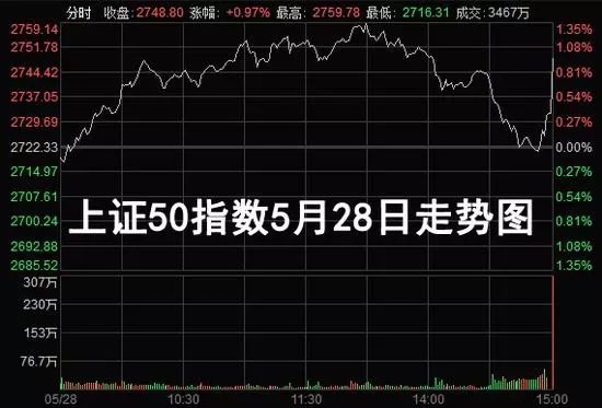而随着尾盘百亿资金的卖出,三大指数没能像5月28日进行拉升,而是在尾盘几分钟走出了小幅下跌的走势。其中上证综指、沪深300、上证50比较明显。