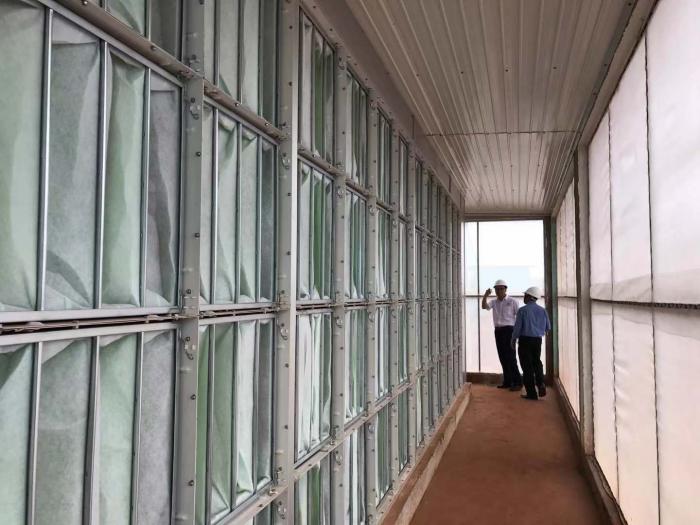 记者在空气过滤室看到,外面纱窗可以隔离枝叶、碎石、蚊虫等较大异物,内部是一层层过滤网,用来分离粉尘、PM2.5、甚至是部分细菌。过滤后的空气统一从猪舍一边进入,另外一边排出,以确保猪舍内的空气流通和洁净度。