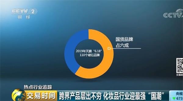 天猫发布的数据显示,“6.18”开场59秒,天猫美妆销售即破亿;仅仅13分钟,销售额便超过去年“6.18”全天,成交额同比增长70%以上。在天猫“6.18”的110个破亿品牌中,六成为国货品牌。