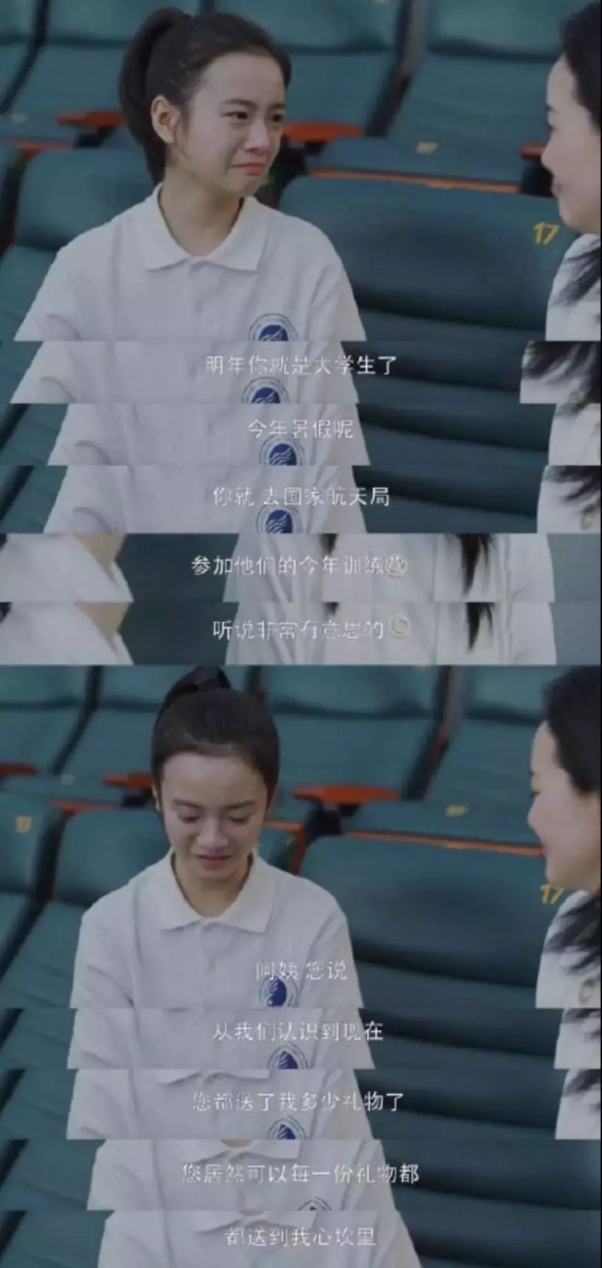 在天文馆的最后一场戏,刘静的乳腺癌短期内治愈了,她在天文馆和英子告别,送给她了一份礼物——国家航天局训练营的推荐信。