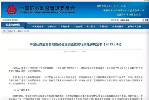 就在同一天,瑞华再次因为零七股份被深圳证监局处罚。此外,它还因康得新和千山药机两个案件正被证监会立案调查。