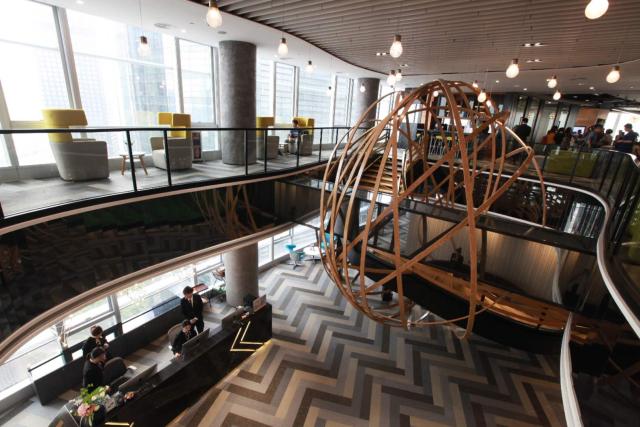一整墙的书和文创产品让人眼前一亮,专属咖啡厅吸引了大波人气,而扫码即可使用的会议室可谓是“最佳办公地”……去年11月,TIMETABLE精品联合办公空间在广州东圃天银大厦开业,主修设计的吴嘉惠和其他四个香港青年一手打造了这个空间。