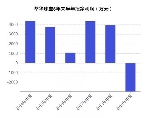 8月13日晚,萃华珠宝披露了半年报。2019年上半年,萃华珠宝实现营业收入10.92亿元,同比下降14.25%;归母净利润亏损2962.83万元,上年同期盈利3914.29万元。这是公司上市以来首次出现半年业绩亏损。
