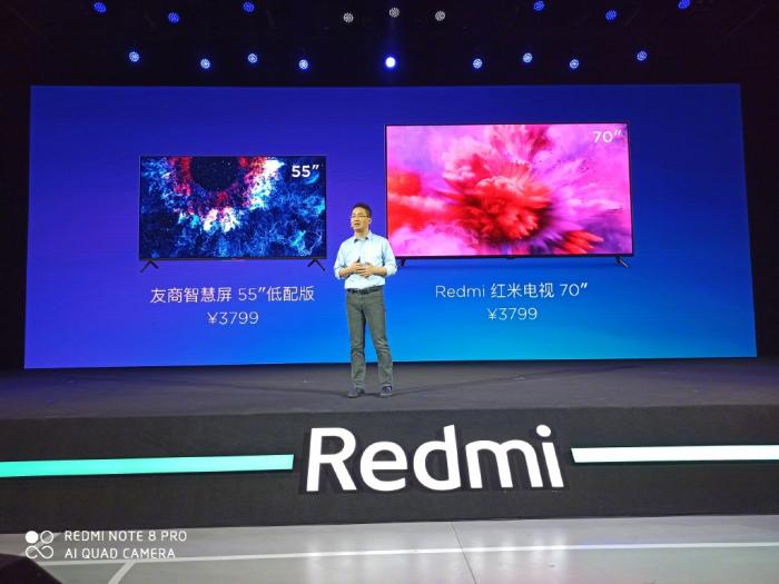 Redmi首款电视产品发布:70英寸售价3799元 与荣耀55英寸智慧屏同价