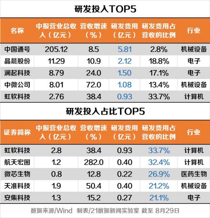 8家科创板公司上半年研发费用在5000万元以上,4家超过1亿元,中国通号(688009.SH)研发投入最高,为5.81亿元。