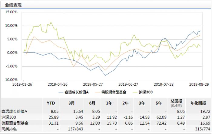 而在8月29日,睿远成长价值A的净值为1.0805元,已取得正收益,表现向好。