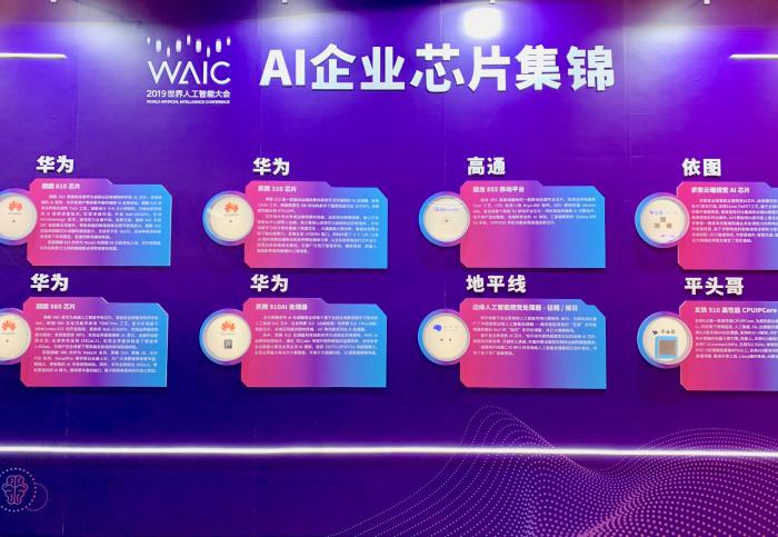 本届大会还在展览馆内设置了芯片墙,展示了各个企业发展人工智能芯片的最新成果,其中包括华为“麒麟810”、高通“骁龙855”、地平线“征程/旭日”系列、依图科技“求索”、平头哥“玄铁910”、紫光展锐“锐虎贲T710”等。