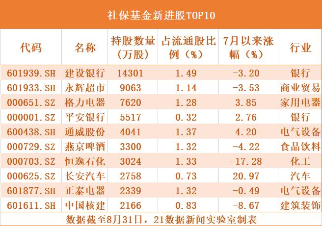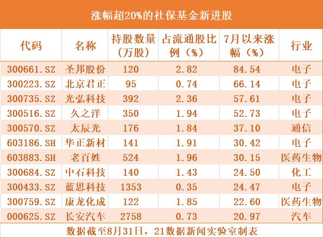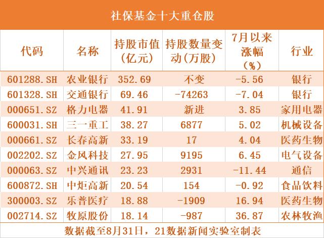 社保基金最新持仓曝光:4年钟爱一股,11只新进股两月涨幅超20%