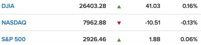 美东时间8月30日,美股迎来8月最后一个交易日。目前投资者正密切关注国际贸易局势与主要的经济数据,美股涨跌不一。截止至北京时间8月31日04:00收盘,道琼斯工业平均指数涨0.16%,报26403.28点;纳斯达克综合指数跌0.13%,报7962.88点;标普500指数张0.06%,报2926.46点。