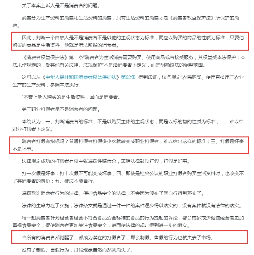 这份判决书虽然仅有5000多字,但却对“知假买假人是不是消费者”等作出了明晰论述。