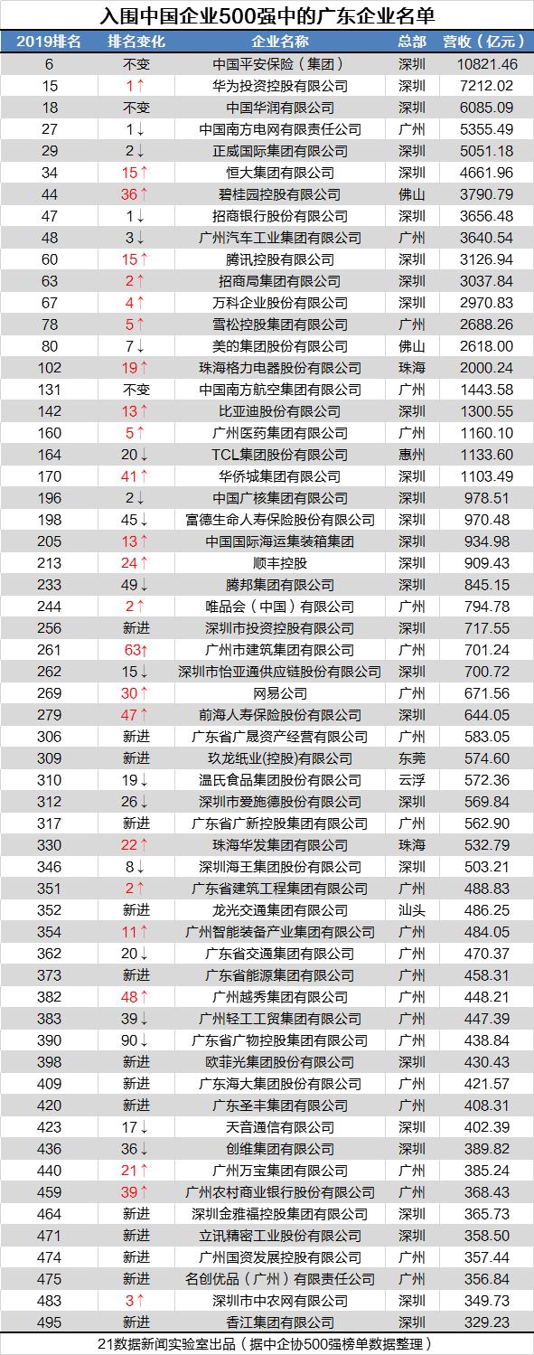 59家粤企入围中国500强,比去年新增7家!全国最猛!