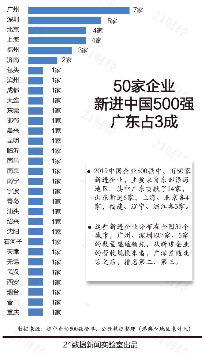 值得注意的是,广东不仅500强总量突出,在新进数量上也全国遥遥领先。