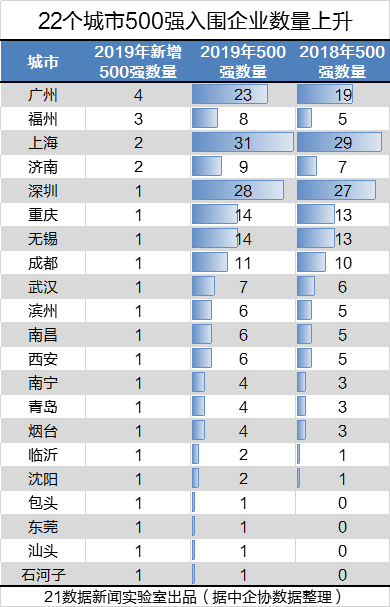 相比去年,广东新增了7家500家企业,为全国500强数量增加最多的地区,其中广州新增了4家,在全国各大城市中排名第一。