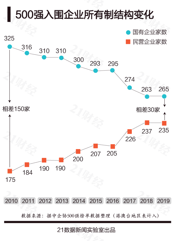 21数据新闻实验室追踪了过去十年的榜单数据,试图解构500强企业背后折射出的经济趋势和区域特征。