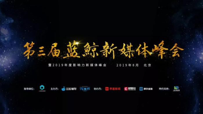 2019年8月29日,由上海报业集团指导,蓝鲸财经、蓝鲸浑水主办,界面新闻、财联社、摩尔金融协办,上海自媒体联盟特约支持的第三届蓝鲸新媒体峰会在北京胜利召开。